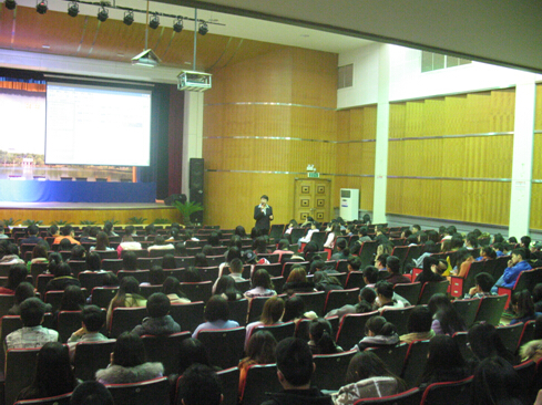 在学校小礼堂讲座现场,陈雪芬总监首先以自己的名字来历开头,拉近了与学生们的距离,随后她简介了万豪国际集团的规模、企业文化、员工管理等情况,一个个鲜活的万豪人的成功经历吸引了学生们的注意力,她对90后学生的准确定位更是赢来学生们的一片掌声。陈雪芬认为,90后的学生并非是不能吃苦的一代人,他们对未来的工作需要更多的是软环境,即得到充分的肯定、融洽的人际关系等。陈雪芬通过介绍万豪集团管理人员的成功经历,希望学生们树立起凡事应从小事做起,从基层做起,态度比能力重要的理念。