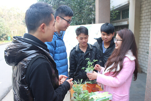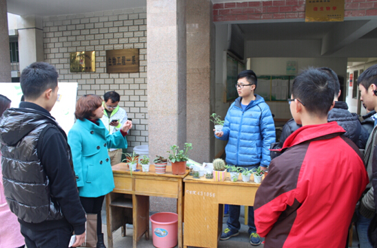 活动中,动植物组织培养协会的同学们为大家讲解了观赏番茄、虎皮吊兰、仙人球等常见盆栽的养护方法与注意事项。2013级钱学森实验班黄德浩同学与2013级生物技术专业向天蓉同学还共同为现场师生演示讲解了“宝石花”的栽培过程。引发了众多师生对盆栽植物的关注,现场同学们表现出了极大的兴趣。