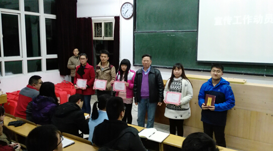 会上,学院党总支副书记洪斌首先宣读了《学院关于表彰2014年度宣传工作先进个人的决定》。院长李毅教授分别为获评学院宣传工作特别贡献奖的6位教师,获评学院优秀通讯员与新闻人物的9位学生颁奖。