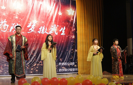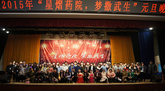 本网讯(通讯员 万朋)星熠药院 梦撒武生。12月28日晚,药学院在大礼堂举行2015年元旦晚会,全院师生聚集一堂,共赏节目,喜迎新年。
