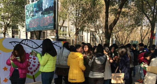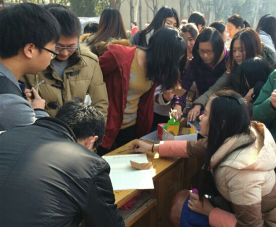 活动现场人声鼎沸,一小时内就有近两百人参加。生科院2013级党支部的同学们摆上“星追愿”的宣传板以及各色卡纸,以便路过同学将自己的新年心愿和联系方式写在彩色卡纸上。活动组织者黄潜介绍说,他们会将这些新年心愿装在许愿瓶里,放在学校尊师台附近埋好,待到来年,再取出心愿瓶逐一联系大家进行反跟踪馈并相互激励。