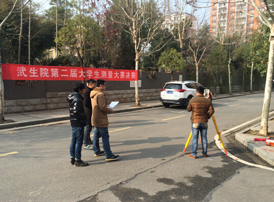 本次大赛自开赛以来,吸引了全校83组团队共249位学生踊跃参与。经过初赛的激烈比拼,最终有21组团队63 名选手进入决赛。决赛当天,天公作美,长河港湾美丽如画,各团队在裁判长口令下紧张进入各测量点。记者在现场看到每组选手操作测量仪器步骤娴熟,操作规范,引来不少观众加油助威!