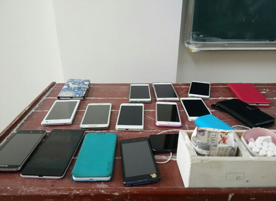 同学们课前自动把手机放在讲台桌上