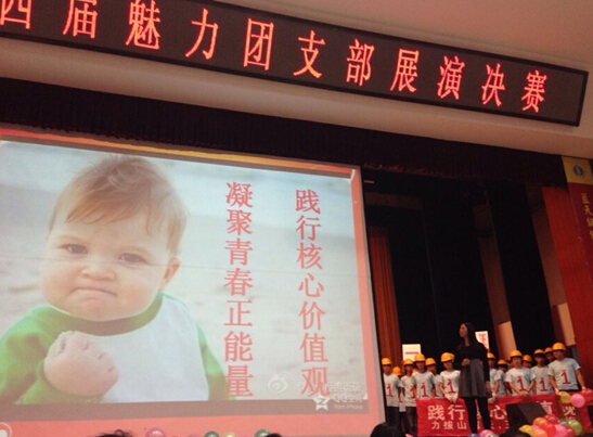 此次大赛汇聚了来自全校13个院系的17支参赛队伍。大礼堂座无虚席,气氛热烈。各参赛团支部的书记先后上台以幻灯片的方式介绍本班团支部,描述团支部的建设过程及建设结果,通过丰富多彩的团组织生活反应各团支部的精神风貌,突出团支部的凝聚力。台上各团支书的演说热情洋溢,解说员的介绍热情似火,台下各参赛队伍口号声此起彼伏,掌声雷动。历经两个小时的比赛,艺术系珠宝班和计信系电子商务二班以94.14分荣获第一名,建筑工程土木一班93.14分获第二名,建筑工程工造二班92.86分获得第三名。最后,“武生院魅力团支部大赛”决赛在“玉生烟”的优美舞蹈剧中圆满落幕。