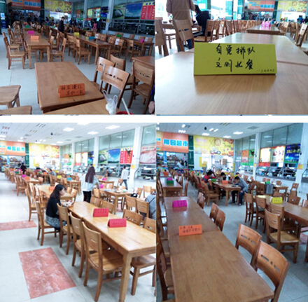 生命科学与技术学院青年志愿者协会副主席李志敏介绍,这些餐牌以彩纸为原材料,用时一个星期制作,靓丽的彩色比较吸引人,能给人温暖的感觉,以纸为材料节俭又环保。餐牌一方面有提示作用,可减轻食堂工作人员负担,更重要的是为了宣扬自觉、节约的文化精神,营造文化氛围。正在该餐厅就餐的13级管理学院柯荣同学说,第一眼看到这么多彩色餐牌感觉很新颖靓丽,细看标语,别人这么用心,谁也不好意思再有不文明的行为了。