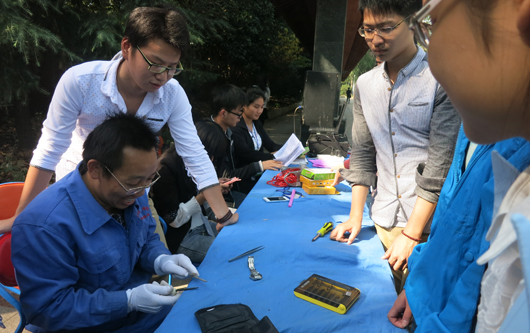 服务站除了“老师傅”外,还有不少“新手”,机械与电子工程学院的新生占传广称自己是来“打酱油的”,他想“利用这个机会多学习课本以外的知识,培养自己的动手能力。”