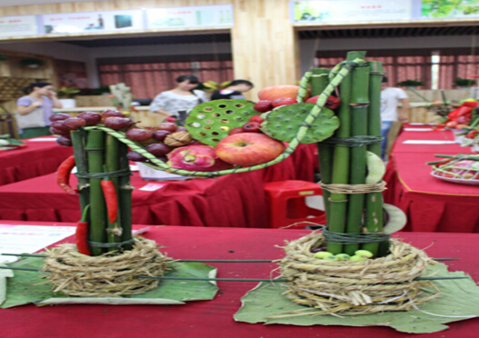 本网讯(通讯员张洁)9月27日,由武汉植物园主办的第一届 “中国梦•花艺梦”花艺竞赛初赛在武汉植物园科普楼举行,主办方提供果蔬、干果及环保材料做为花艺作品素材,要求作品以“我的中国梦”、“丰收”、“环保节能”为主题,题目自拟。比赛限时50分钟,评委从色彩配置、技巧与做工、造型与设计、创意与主题四个方面来打分。