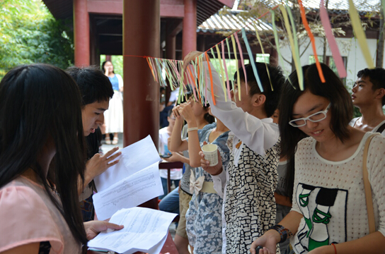 本网讯(通讯员 曹莉芳 张婷)丹桂飘香时节,楚韵华服社在校求索书院举办了“桂花树下习礼仪”活动。活动引来了师生们的热情参与。活动现场热闹非凡,有的在绞尽脑汁猜谜语、有的着汉家衣裳学礼仪、还有赏茶道、品桂花茶的……师生沉浸在弥漫开来的浓郁桂花香中,尽情感受着中国传统文化之美。