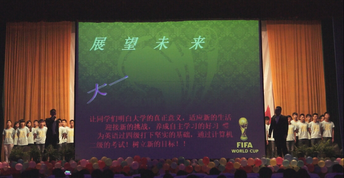 本网讯(大学生记者团 吴凯 通讯员 张燚 )身着统一的班服,喊着整齐的口号,用PPT展示班级规划,迎新晚会不再只是歌舞升平。15日晚,在建筑工程学院2014迎新晚会上,2013级土木工程3班的学生在舞台上进行了班级职业生涯规划展示。该院的一名女班长笪昊观看过后感叹自己做的还有很多不足,晚会上展示的班级职业生涯规划有许多地方值得借鉴。