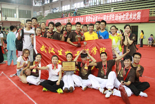本届武术比赛由省教育厅、省大学生体育协会主办,武大、华科、华师等41所高校代表队共596名运动员参加了比赛。在激烈的竞赛过程中,我校22名参赛健儿不畏强手,奋勇争先,充分展现出较高竞技水平和良好精神风貌,一举夺得集体项目一等奖,并先后斩获9个单项第一、9个单项第二、6个单项第三等30余个奖项;同时,我校李兵老师获“优秀裁判员”,杨硕、宋健两同学获“优秀运动员”。
