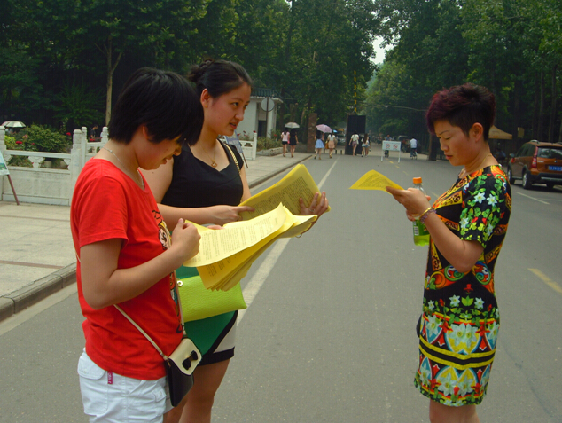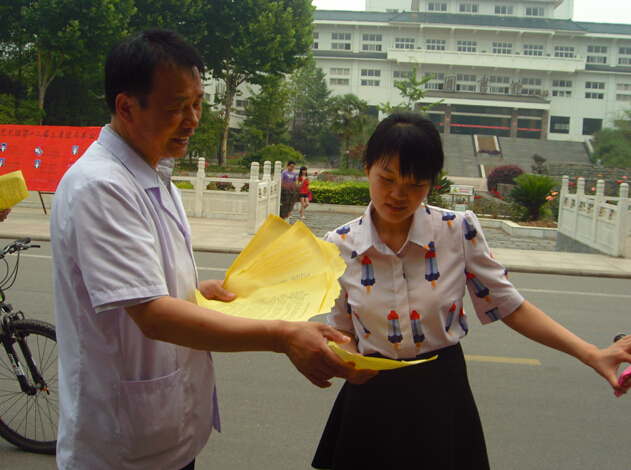 第四党支部书记高瑾带领党员向师生发放宣传单