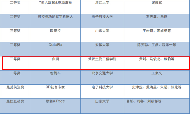 本网讯(记者 辰熙)首届百度校园极客风采展示会日前在北京顺利收官,参与展示的9支团队是从百度举办的首届“校园极客大赛”中脱颖而出的参赛者。由我校生物科技系学生黄埔、建筑系学生熊豹和武汉理工大学学生马俊龙组成的团队,在展示会上凭借其“不需穿戴设备的体感游戏:虫洞”项目获得三等奖。
