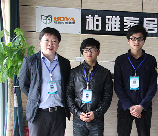 经过短短两个多月的实习锻炼,他们学到了很多实战经验。陈彪说,一幅在我们看来很理想的设计图,从施工的难易度、客户的需求、合理的价格等角度去分析,却完全不符合要求,不具实用性。阮家旺、陈彪在公司设计人员的指导下,精简CAD图导入3D软件中建模、对市场材料的认识、新工艺等专业知识在这里不仅得到运用,而且更具实用和可操作性。阮家旺说,以前客户前来咨询,我们都是站在经理身后,不知道怎么开口交谈,现在已经完全可以独自很好的接待客户,沟通交流、介绍设计图等都不在话下。