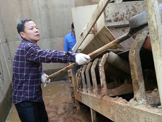 据该公司负责人介绍,拌站机器的平皮带和斜皮带下面的沙、石2-3天必须清理一次,如不及时清理,会对安全运行和工地工期带来严重影响。公司也曾多次聘请勤杂人员进行处理,但都因工作量大、体力等原因辞职,目前仍未招到勤杂工。为确保安全生产,在公司副总经理阮峰、陶忠民等同志的带领下,大家不计报酬、克服困难,利用空闲时间共同兼职担任起了勤杂工。