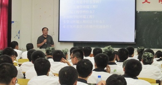 甘教授首先回顾了化学与环境工程系的发展历史,再从专业理念、人才培养方案、课程设置、师资队伍、专业特色、宽口径就业、双证书获取等方面向同学们作了详细介绍了。范望喜则从转变思维方式、学习方式和生活方式等方面进行了深入浅出的讲解,希望新生能尽快适应大学学习和生活,早日成才。