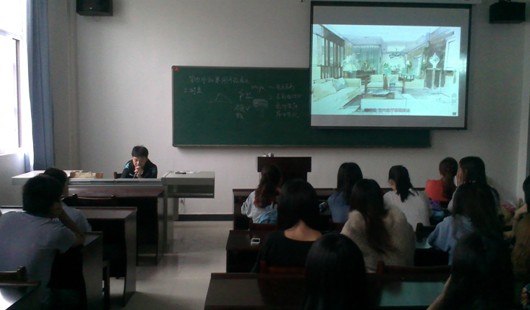 本网讯(通讯员 陈静)9月13日早晨6:50,在钱学森大楼107室艺术系的“早读书”教室里,该系12级环艺专科一班的戴国鑫正在利用多媒体给同学讲解他在庐山训练营的手绘作品,“用彩铅把背景的对比凸显出来”,“这个细节处理要注意,待会儿我给大家演示一下……”。同学们听得很认真,不时与台上的“老师”互动。