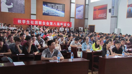 本网讯(通讯员 曹莉芳 刘攀) 近日,由校学生社团联合会举办的第八届听证会在钱学森报告厅顺利举行,我校34个校级社团和校团委所属的七大学生组织百余名代表参与听证会。