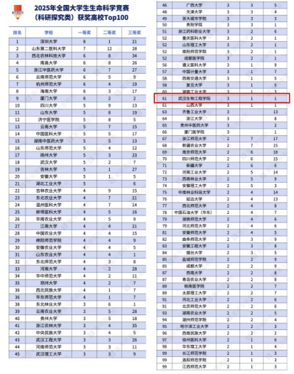 本网讯(通讯员 闫鹿)近日,全国大学生生命科学竞赛委员会官网公布了“第十届全国大学生生命科学竞赛(科学探究类)获奖高校Top100”名单。本届赛事共产生494项一等奖、761项二等奖、2277项三等奖,获奖高校共计496所。我校以荣获一等奖3项,二等奖、三等奖各1项的喜人成绩,位列获奖高校61位,位居全国民办高校首位。