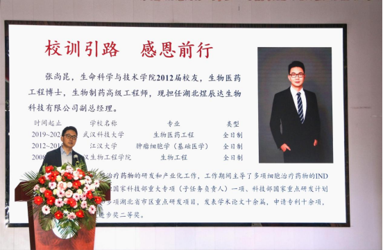 校友代表、生命科学与技术学院2012届校友、武汉波睿达生物科技有限公司副总经理张尚昆结合自身成长经历,深情回顾了母校教育对其职业发展的深远影响。医药学院2024级药学专业潘钰涵、体育学院2022级社会体育指导与管理专业高灿同学分别进行了职业生涯规划路演,展现了新时代大学生清晰的自我认知与蓬勃的成长潜力。