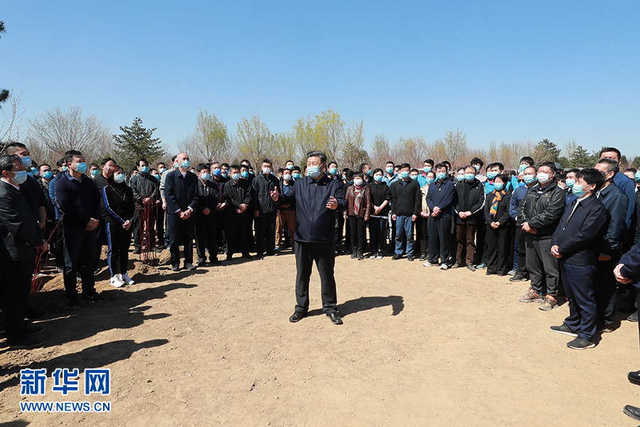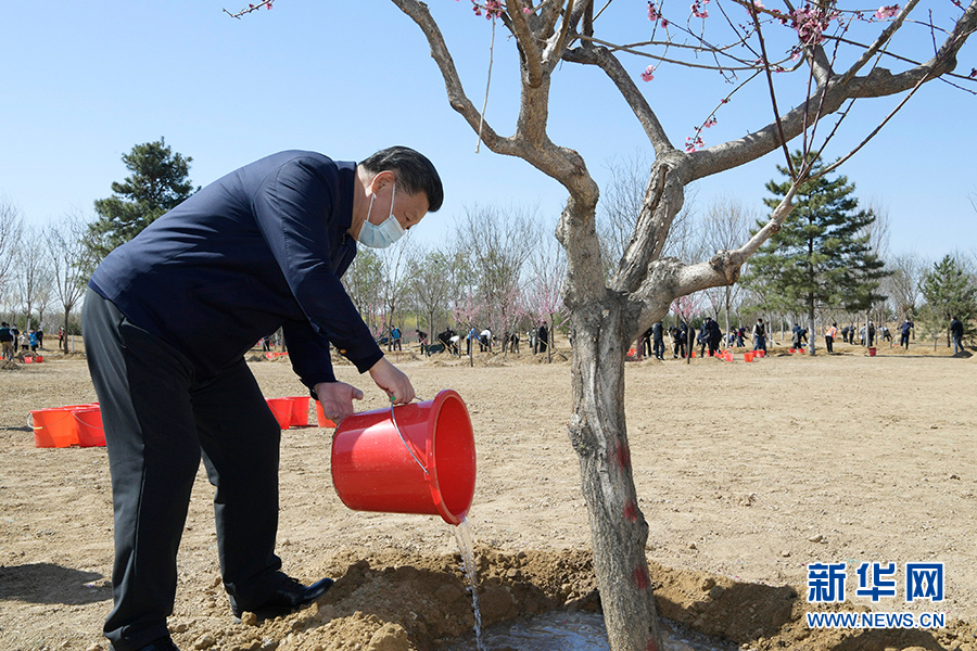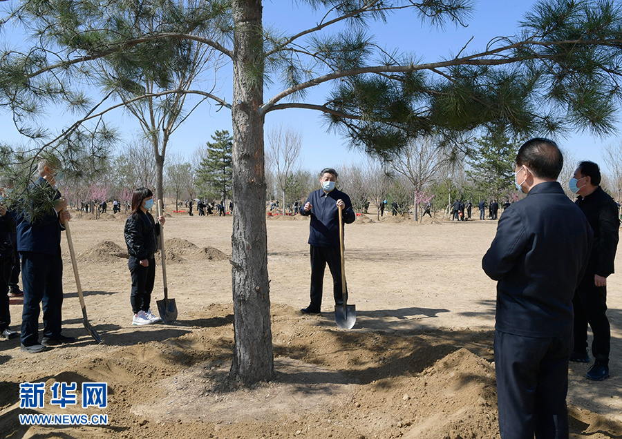 新华社北京4月3日电 中共中央总书记、国家主席、中央军委主席习近平3日上午在参加首都义务植树活动时强调,在全国疫情防控形势持续向好、复工复产不断推进的时刻,我们一起参加义务植树,既是以实际行动促进经济社会发展和生产生活秩序加快恢复,又是倡导尊重自然、爱护自然的生态文明理念,促进人与自然和谐共生。要牢固树立绿水青山就是金山银山的理念,加强生态保护和修复,扩大城乡绿色空间,为人民群众植树造林,努力打造青山常在、绿水长流、空气常新的美丽中国。