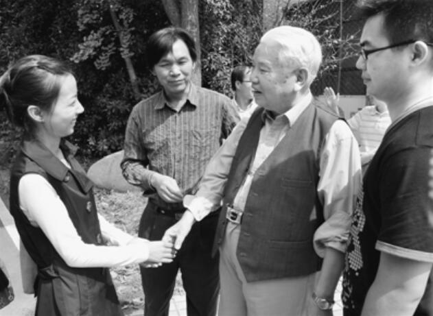 2012年9月25日,沈因洛(右二)与“中华孝亲敬老楷模”“中国大学生自强之星标兵”许大卉(左一)交谈。