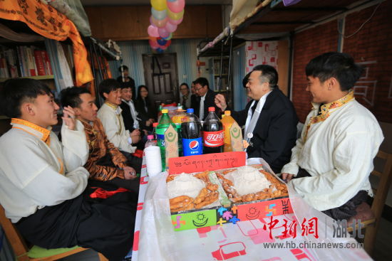 2月27日,藏历新年第一天一大早,该校党委书记赵正洲及党委宣传部、学工部、校团委,有关院系负责人走访藏族学生寝室,为他们送去新年祝福。
