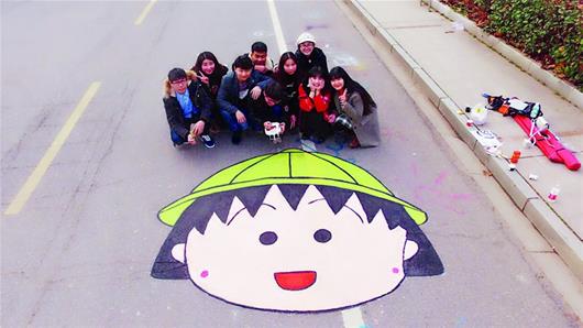 据介绍,这些动漫形象均是该校建筑工程学院2014级土木工程专业学生所画,是他们专业课《工程测量》的期末作业。(记者宋锐 通讯员刘思瑶摄影报道)