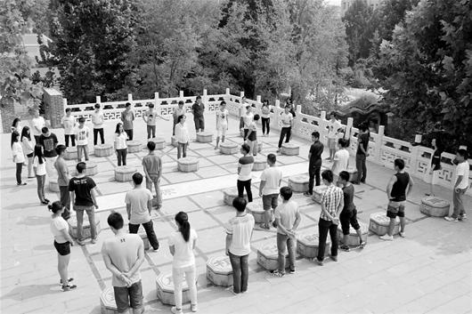 楚天金报讯 “红方,炮三平五,蓝方,车六退三。”昨日,在武汉生物工程学院校园长城的楚汉台上,一场别开生面的体育选修课——下巨型象棋,让该校学子大呼过瘾。学生们把上课图片发到网上后引来不少关注,网友留言感叹道:“有一种体育课叫别人大学的体育课。”巨型象棋棋盘长10米、宽9米,棋盘上共有32颗棋子,每个重约120多斤,直径为60厘米,棋子两侧还各有一个环,方便学生拎举。(记者宋锐 通讯员肖亚慧摄影报道)