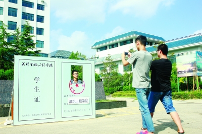 昨日,武汉生物工程学院迎新现场一个巨大的学生证火了。“学生证”高2米、宽1.6米,新生、毕业生都抢着拍照,不少新生家长还和孩子来张合影。