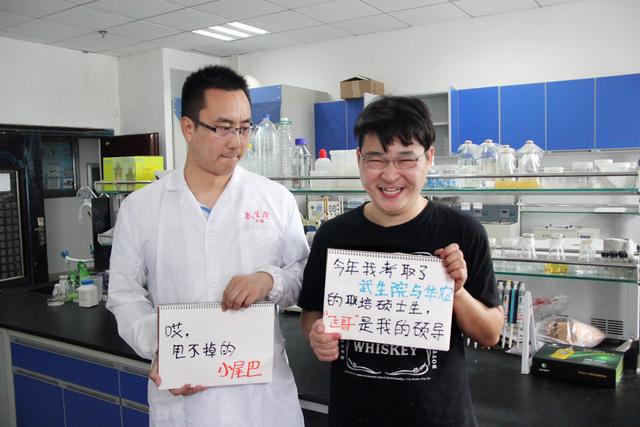 近日,武汉生物工程学院生命科学与技术学院2015届本科毕业生曹中权和他的老师徐飞副研究员拍摄的一组“题板”毕业照爆红。网友“晨晨辰辰”点赞说:“毕业的主角除了学生还应该有老师,这组照片里散发着浓浓的师生情,好有爱!”网友“明天你好”等评论说,“这是我见过最萌萌哒的一组毕业照”。