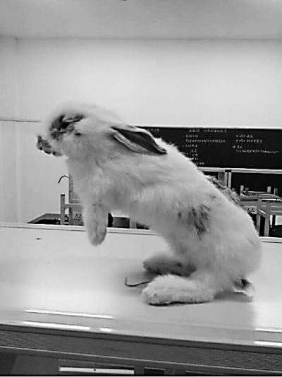 本报讯(记者杨佳峰 通讯员 叶涛)昨日,在武汉生物工程学院生命科学与技术学院微生物实验室一只站立状的白兔标本制作完成。