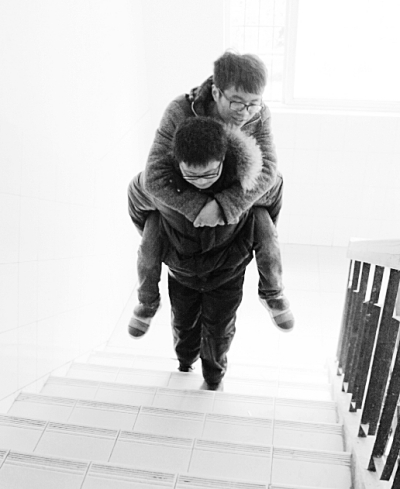 小谈来自孝感,而鲁杰是武汉人,彼此并不相识的两人,为什么谈崇阳会主动提出帮忙?原来初中时,谈崇阳有一位好友也是脚受伤,但当时自己没有帮忙,一直心存内疚:“现在看到鲁杰,我就想起了那个朋友。我能想象到鲁杰肯定会有很多不便,作为同学,照顾他是应该的,我也不想再留遗憾。”就这样,谈崇阳成了鲁杰唯一的室友。