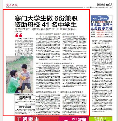 初中母校的贫困学子 激起寒门大学生助困愿望