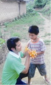 骆群曙暑假期间走访山区留守儿童