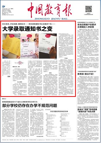 随后,山东、河南、新疆、河北、浙江、广东、湖南等多地在《关于做好2014年普通高校招生工作的通知》中也明确提出,“建立”或“逐渐建立”校长作为高校法人代表签发或授权签发录取通知书制度。