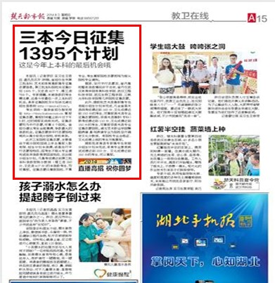 据悉,实行平行志愿后,省内高校整体录取情况好于往年,省内仅武汉体育学院体育科技学院、武汉工程科技学院、武汉生物工程学院、三峡大学科技学院等几所院校征集志愿。