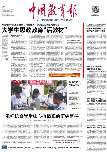 近年来,湖北坚持把社会主义核心价值教育融入高校人才培养全过程,创新大学生思想政治教育方式方法,在高校学生中先后挖掘了一大批先进人物,形成了先进典型群体示范的“明星效应”。