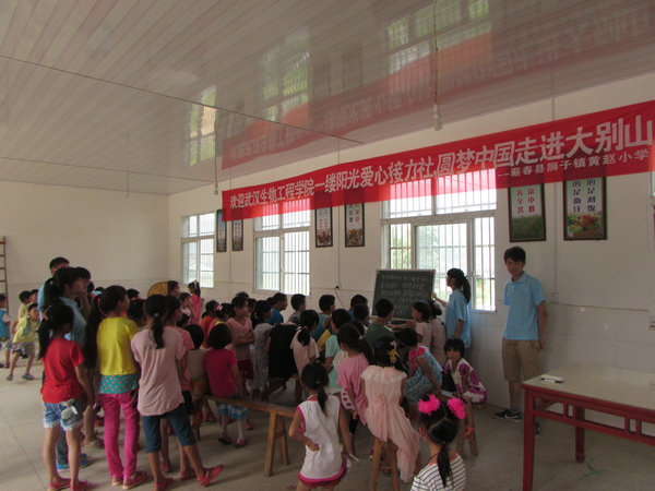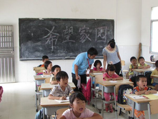 7月7日,蕲春县第一个为留守儿童开办的 “希望家园”暑期班在狮子镇黄赵小学正式开班。来自武汉生物工程学院的13名志愿者来到这里义务支教,黄赵小学参加“希望家园”暑期培训班的学生有80多人,在“希望家园”里,志愿者设立了课业辅导、课堂教学、兴趣培养、素质拓展、心理咨询、安全自护等方面课程,极大的满足了留守儿童的需求。志愿者骆群曙说“我希望通过我们的行动,带动更多的志愿者来参加希望家园,关心留守儿童,帮助他们的成长。”