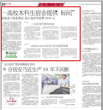 网友“小妮子鲁黎”昨日在本报“长江科教”微博上留言:“一个学校教学设施、图书资源、师资力量远比二人间重要。学生来学校是学习的,而不是来享受的。太早享受过于优越的条件不见得是好事。”