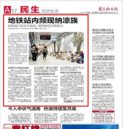 地铁公司不拒绝纳凉族