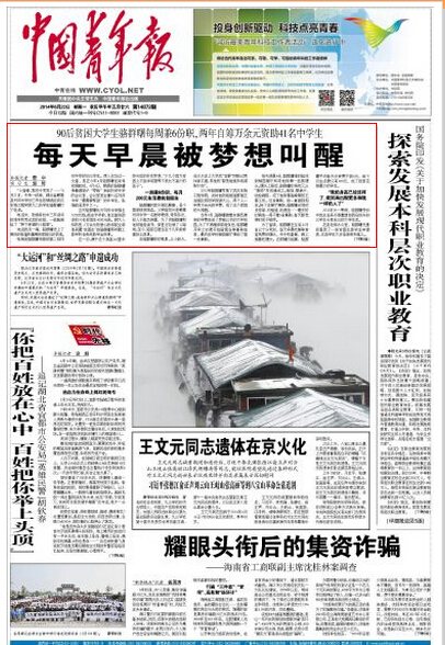 本报记者 雷宇 实习生 郭哲 《 中国青年报 》( 2014年06月23日 01 版)