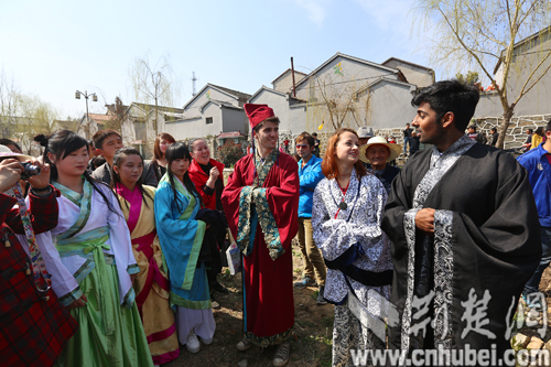 “花朝节上来了老外耶!”游赏花朝节的人们,惊奇的发现有三名外国人在逛花朝,这是花朝节上罕见的新鲜事。这三名外国朋友都是在汉工作的外籍英语教师,特地前来感受中国的花朝文化。“真的是太热闹了!很好玩。”现场,三人也穿上汉服,学弹古筝,感受中国古文化。“老外穿我们的汉服呢,”游人连称“有趣,好玩!”大家也纷纷和他们合影留念。除了逛花朝节,外国朋友在此摆摊做生意,现场售卖商品,着实令人开了眼界。他的中国妻子胡奥妮介绍,丈夫叫西蒙,来自加拿大,称得上是新洲的“洋女婿”,小两口趁着花朝节的旺盛人气,特地来这里做点生意。