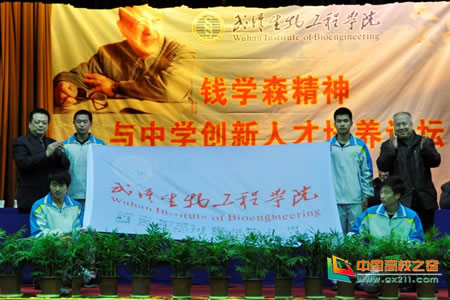 1月11日上午,武汉生物工程学院隆重举行钱学森精神与中学创新人才培养论坛。钱学森之子钱永刚教授应邀出席论坛活动;全省各地、市、州90余所中学、招办领导;学校理事会领导、校领导及有关部门负责人;钱学森实验班学生代表参加了有关活动。
