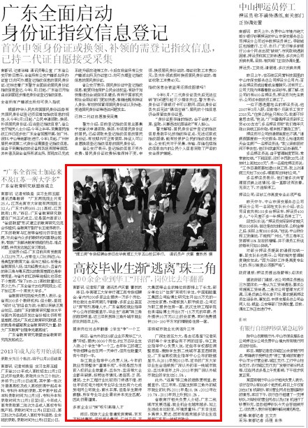 此外,“逃离”珠三角的趋势更明显。数据显示,这三年来,应届生到珠三角外的城市就业的比例,2011年是18.9%,2012年达19.7%,2013年则上升到20 .2%。