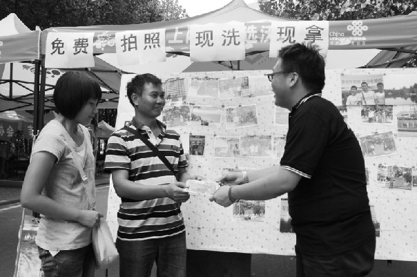 负责拍摄和冲洗照片的是该校园林系大四学生张培文的创业团队。昨天,他们为新生和家长免费拍了近800张全家福,还为每张照片精心过塑。