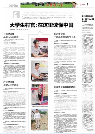 在江夏区,现在活跃着70余名大学生村官;整个武汉市,大学生村官超过400名。霍计武报道刊发后,本报记者昨天采访了10余名大学生村官,说起霍计武,说起做村官的亲历,他们有一个共同感受:当村官,接中国地气。