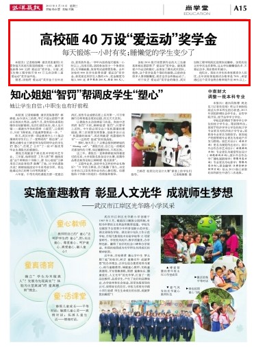 该校2010级市场营销专业的大三生康亮和杨乐都获得了“爱运动”奖学金。康亮喜爱户外运动和散打,还参加了晨光武术团队,他称,这个奖学金是个很好的鼓励,以前宿舍很多人喜欢睡懒觉,现在也学会积极运动了。 对于设立“爱运动”奖学金的缘由,武汉生物工程学院院长助理朱祖襄称,该奖的设立对学风也有影响,过去学生睡懒觉的多、不爱运动多,现在都有所减少。