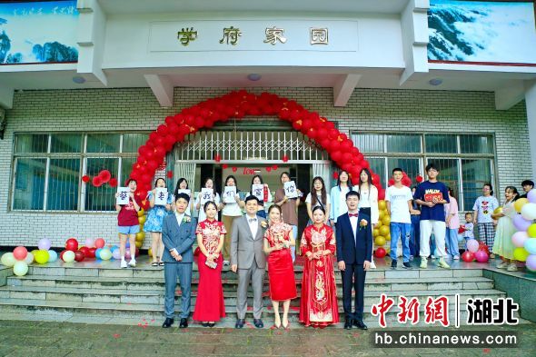 中新网湖北新闻6月19日电 (李春艳 陈冲 谈宇锋)“一拜在场耆老,谢八方宾客;二拜高堂父母,谢养育之恩;三拜知心爱人,谢今生之缘……”6月18日,武汉生物工程学院2023年“爱如夏花秾 情似静水深”青年教师集体婚礼在学校地标景观晨光湖畔浪漫上演。该校蔡林青、陈宁馨、罗亚楠三位青年教师及其先生身着婚礼服,在全校师生共同见证下喜结连理。