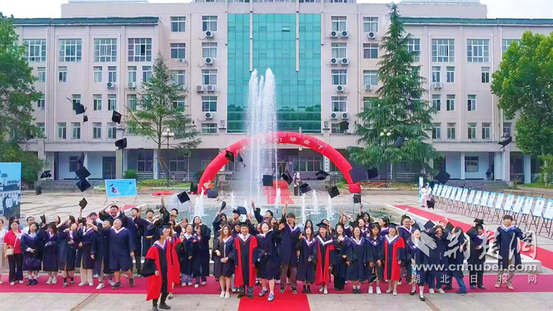 荆楚网(湖北日报网)讯(通讯员 李春艳 洪斌 摄影 袁佳煊 刘宏熠)正值高校毕业季,武汉生物工程学院学府广场一席“中”字型红毯蹿红网络。6月18日,该校管理学院“共话青春担当,寄语美好未来”2023年毕业典礼在学府广场温情上演。师生身着毕业服,携手走红地毯,过拱门,看优秀毕业生事迹展,在毕业照片墙上认领属于自己的照片......