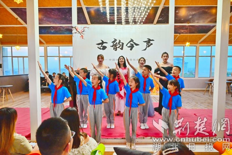 钱学森小学的小朋友跟着演唱者一起吟诵诗词。
